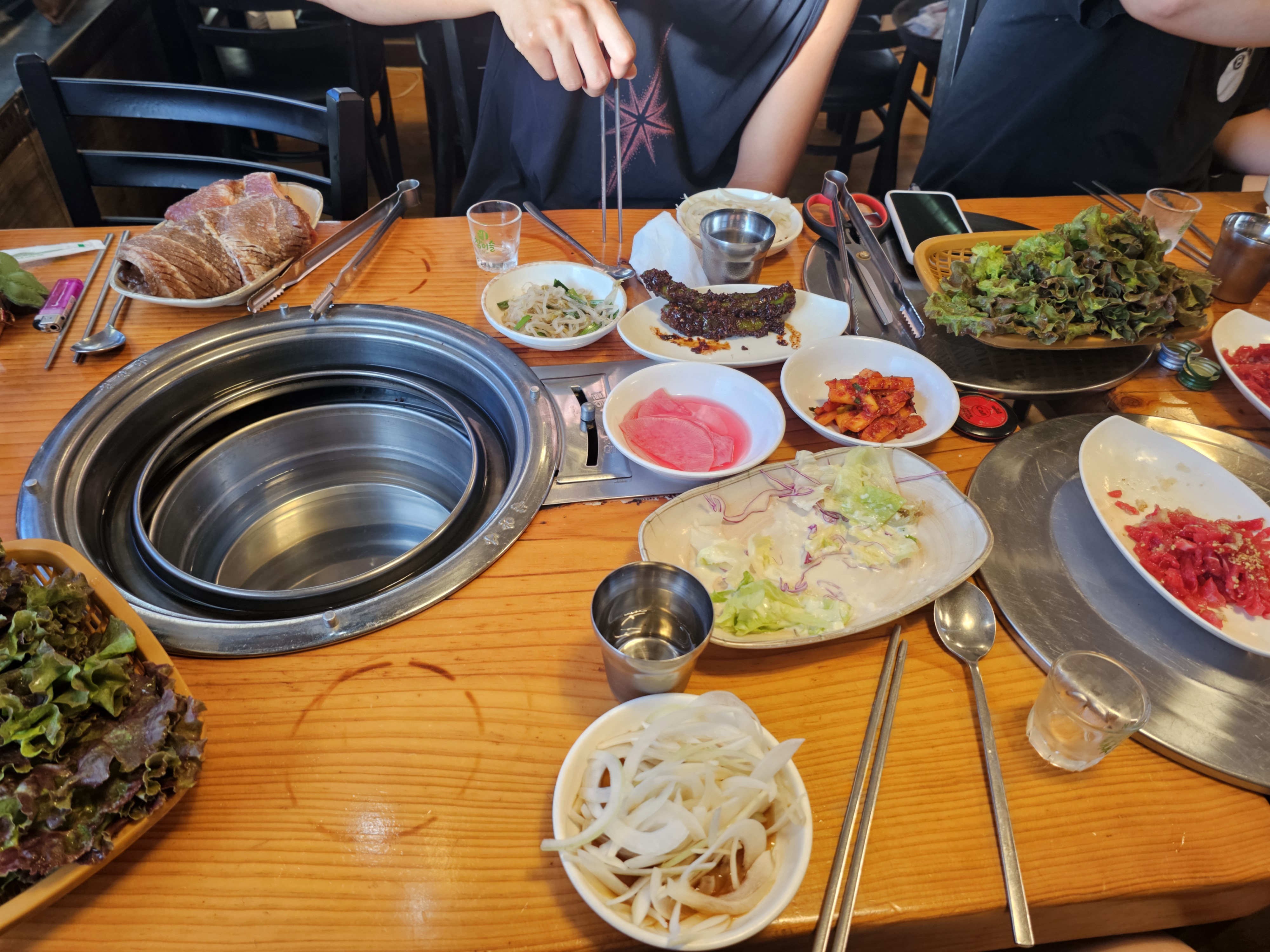 대박인게 육회가 기본반찬으로 나오더라고요!! 그리고 샐러드 , 상추 , 된장양념된 고추 ,도라지 ,콩나물 등등